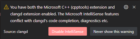 이제 C/C++ 확장의 Intellisense 기능을 꺼 줄 거예요.